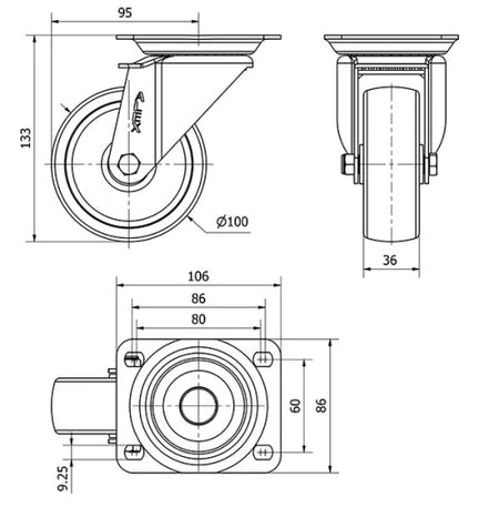 Chapa de aço com até 4 mm de espessura. Acabamento zincado brilhante. Suporte com dupla fileira de esferas. Modelo universal para cargas médias. Fabricado de acordo com as normas europeias EN 12530/12532.