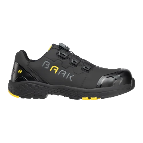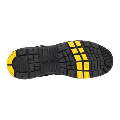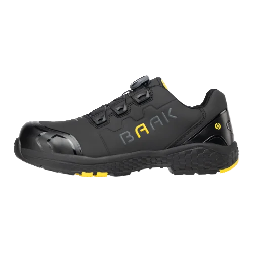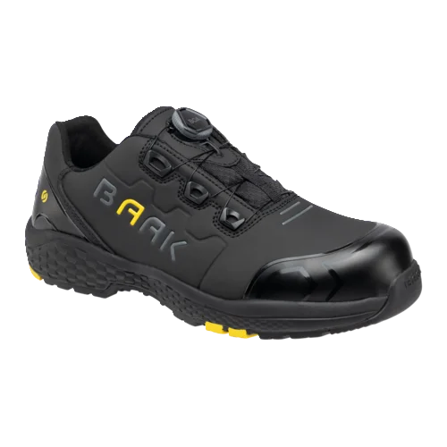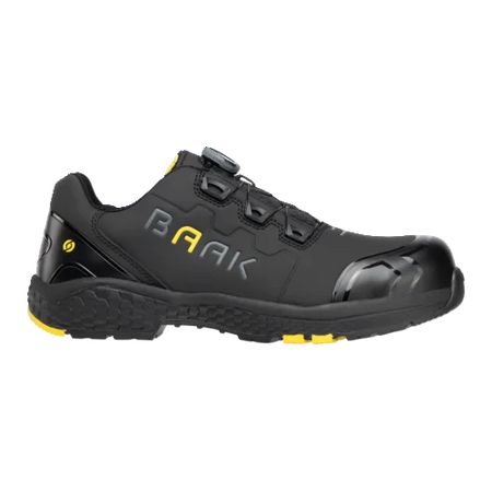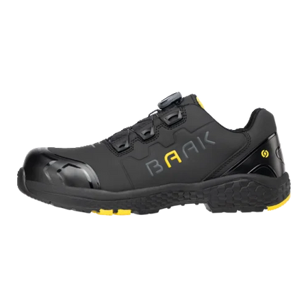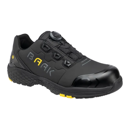 afetyshoe Alex, Art. 223012; EN ISO 20345:2022 S3S FO HRO LG SC SR ESD; Regra DGUV 112-191; Microfibra com proteção TPU na biqueira e no calcanhar; Forro têxtil sanduíche; Sistema Baak®go&relax; Capa flexível composta Baak; Palmilha Softstep+; Proteção contra penetração Baak NeoShield; Sola EVA/borracha; Tamanho 38-48, Largura 11
