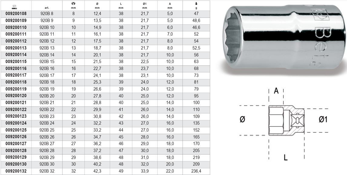 BETA CHAVE CAIXA 1/2 12 FACES