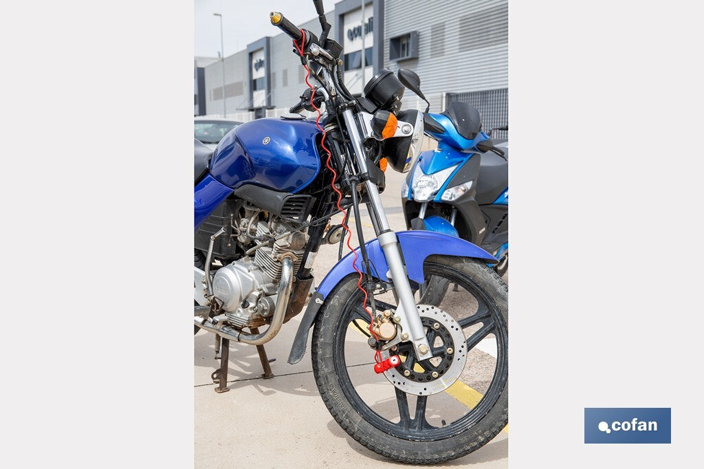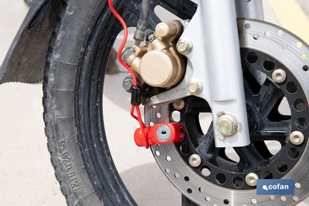 Este cadeado de freio a disco com cabo garante a segurança do seu veículo de duas rodas e foi especialmente projetado para bicicletas, motocicletas ou scooters. Sua construção robusta e sistema de ancoragem o tornam um excelente acessório antifurto, seja para uso urbano ou diário. O cadeado é feito com um corpo de liga moldada que oferece alta resistência a impactos, corrosão e adulteração. É compatível com discos de freio de até 0,7 cm de espessura, garantindo uma instalação firme e rápida. Incorpora uma fechadura tubular com chave, uma tecnologia que melhora a proteção contra arrombamento e métodos de entrada forçada. Inclui duas chaves tubulares de latão niquelado para maior segurança. Este cadeado possui um cabo de segurança vermelho de 1 metro de comprimento que permite fixar o veículo a uma estrutura fixa. O cabo também serve como um lembrete visual para evitar andar com o cadeado acionado, prevenindo assim danos ao disco de freio. Este cadeado é ideal para quem busca uma solução antifurto compacta, leve e altamente eficaz. Com dimensões de 7,5 x 2,5 x 5,8 cm, é perfeito para estacionamentos em vias públicas, escolas, universidades ou ambientes de trabalho onde seja necessário deixar o veículo por algum tempo.