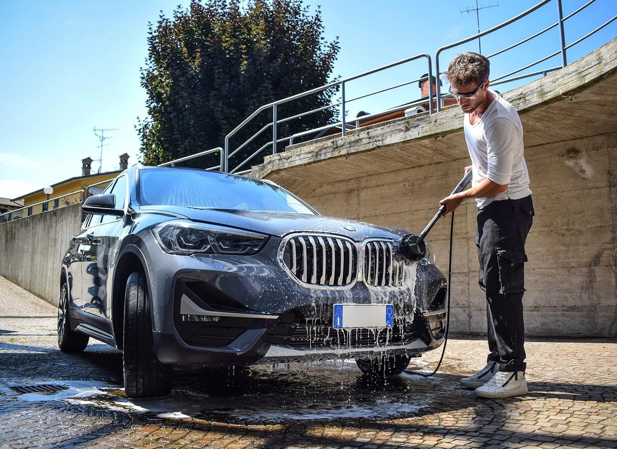 - Acessórios fornecidos: pistola de conexão rápida, mangueira de alta pressão de 8 m, lança com bico ajustável para jato estreito/largo, bico turbo com jato rotativo e bico de espuma para difusão de agente de limpeza em baixa pressão, escova fixa e rotativa, sonda de limpeza de 6 m de comprimento e acessório de limpeza