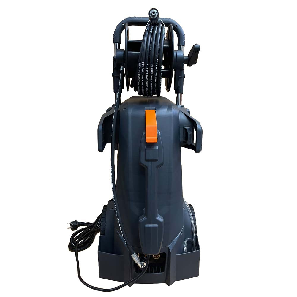 Lavadora de alta pressão prática e compacta com motor de indução silencioso e proteção térmica. Extremamente móvel graças às rodas grandes, robustas e de borracha. Alça horizontal ergonômica ; fácil de levantar Equipada com uma bomba axial em latão com 3 pistões em aço inoxidável. Cabeçote de cilindro de latão Sucção integrada de detergente com sonda de sucção externa TOTAL STOP : Desliga o motor assim que a cabeça da bomba entra no modo de bypass. Isso economiza energia e minimiza o desgaste da cabeça da bomba. Acompanha: empunhadura tipo pistola, carretel de mangueira pressurizada com 10m de mangueira de borracha, lança variável, lavadora de alta pressão.