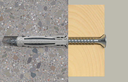 Devido à sua expansão de 4 vias, a bucha de expansão SX Plus da fischer é ideal para materiais de construção sólidos, como betão, tijolo sílico-calcário e alvenaria. As lâminas de fixação especiais garantem uma pré-fixação do parafuso, o que significa que não é necessário mantê-lo adicionalmente no lugar para aplicações suspensas. Esta fixação por parafuso permite ao utilizador um processo de ajuste flexível e confortável. O rebordo flexível da bucha também evita que a bucha deslize mais profundamente no furo para uma instalação segura. O material de nylon de alta qualidade garante uma fixação permanentemente segura numa vasta gama de materiais de construção sólidos e perfurados.