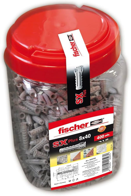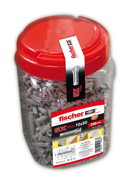 Devido à sua expansão de 4 vias, a bucha de expansão SX Plus da fischer é ideal para materiais de construção sólidos, como betão, tijolo sílico-calcário e alvenaria. As lâminas de fixação especiais garantem uma pré-fixação do parafuso, o que significa que não é necessário mantê-lo adicionalmente no lugar para aplicações suspensas. Esta fixação por parafuso permite ao utilizador um processo de ajuste flexível e confortável. O rebordo flexível da bucha também evita que a bucha deslize mais profundamente no furo para uma instalação segura. O material de nylon de alta qualidade garante uma fixação permanentemente segura numa vasta gama de materiais de construção sólidos e perfurados.