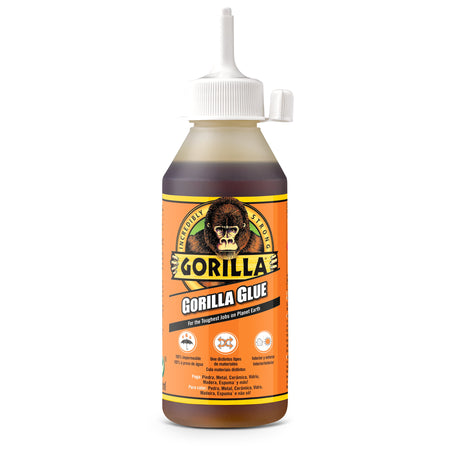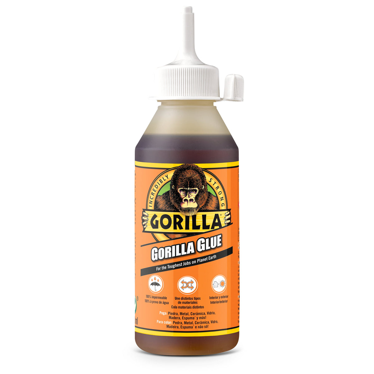 A Gorilla Glue é ativada com a humidade. Humedeça levemente uma superfície com água. Não adicione água ao frasco.
