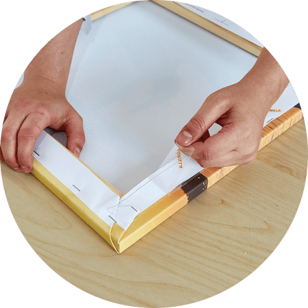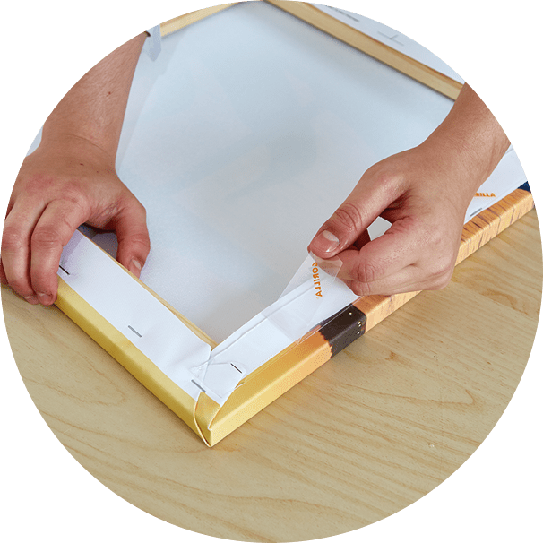 Remova o revestimento transparente e alinhe o objeto na posição pretendida. Para remover o revestimento mais facilmente, aperte e estique uma ponta do adesivo até que o revestimento levante da fita adesiva. Aplique a fita adesiva na vertical na parte de trás do objeto. Corte fita adesiva à medida: utilize 10,2 cm de Fita Dupla Face Transparente por 454 g de peso. Pressione para fixar a fita adesiva ao objeto.