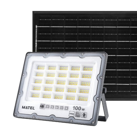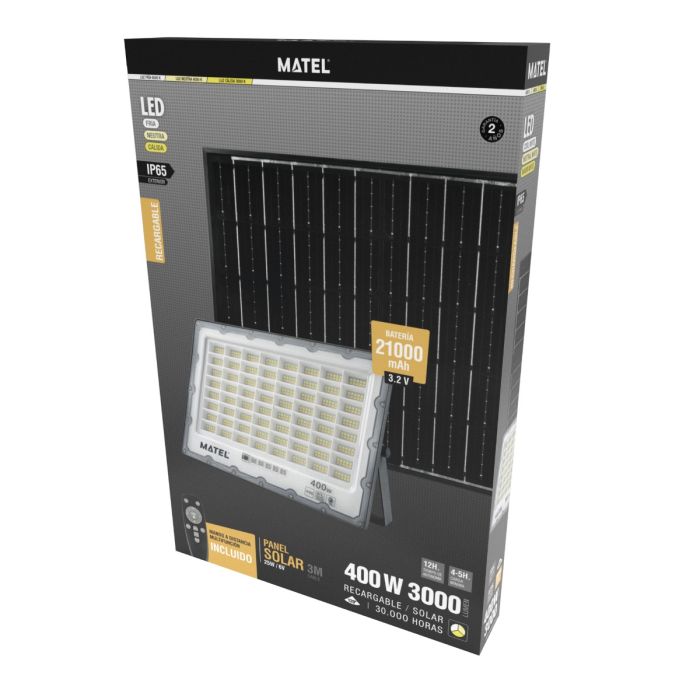 Projetor com voltagem de 3,2V. Abertura de luz não inferior a 120º. CCT: 6500K, 4000K, 3000K. Sensor crepuscular. IP65, adequado para uso externo. Duração da bateria: 12 horas. Tempo mínimo de carregamento: 4-5 horas. Inclui controle remoto multifuncional. Mudança de temperatura e intensidade. Comprimento do cabo do painel do projetor: 3 m. Eles economizam até 90% de energia. Vida útil média de até 30.000 horas.