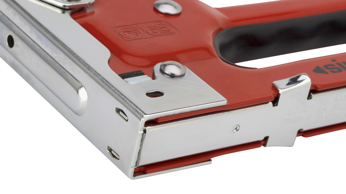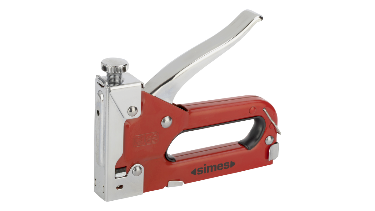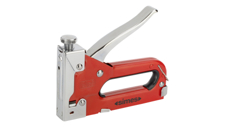 Grapadora manual profissional para grampo 53 com regulador de força, indicada para carpintaria e tapeçaria.