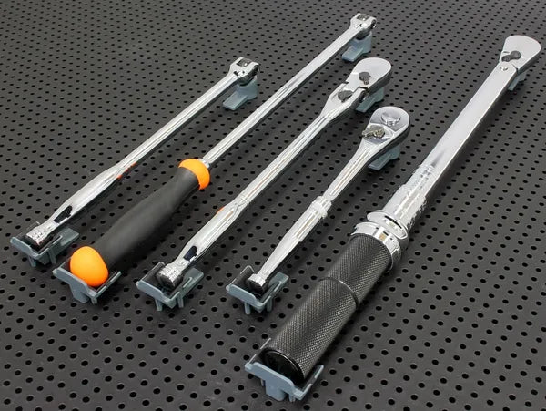 Os suportes de roquetes cabem em quadras de 1/4, 3/8, 1/2 e 3/4”.