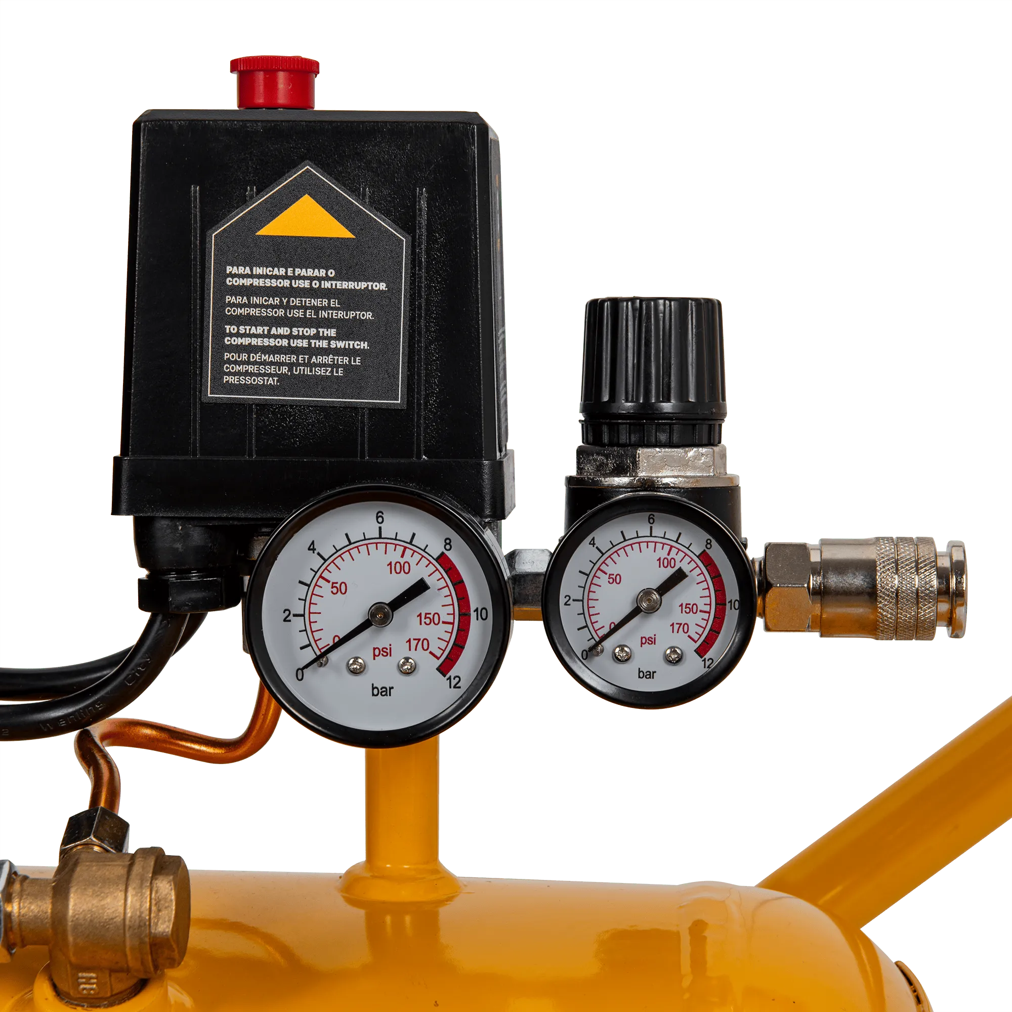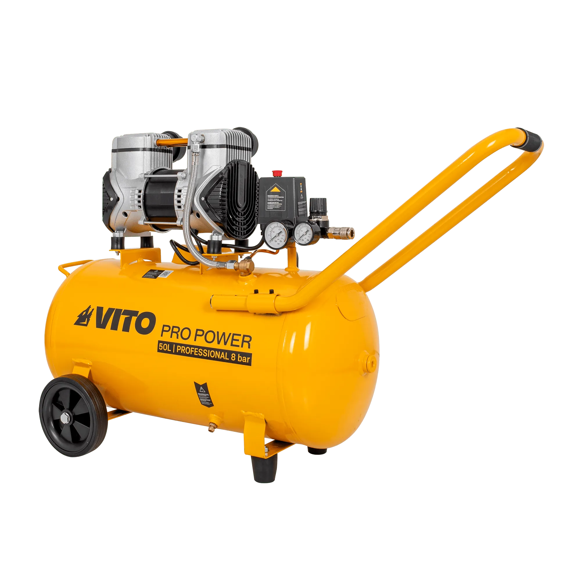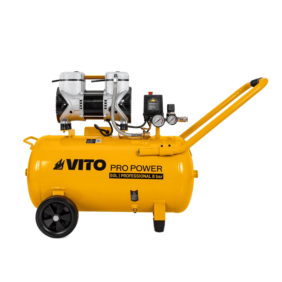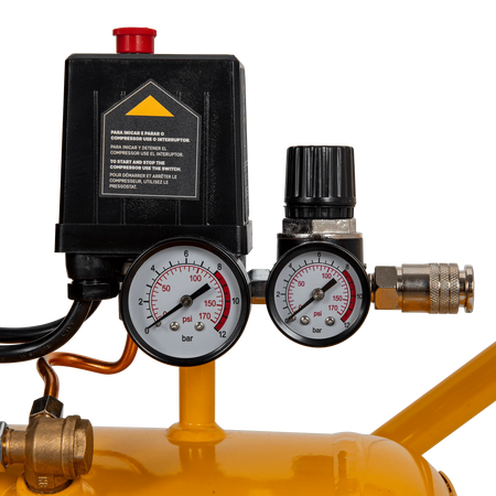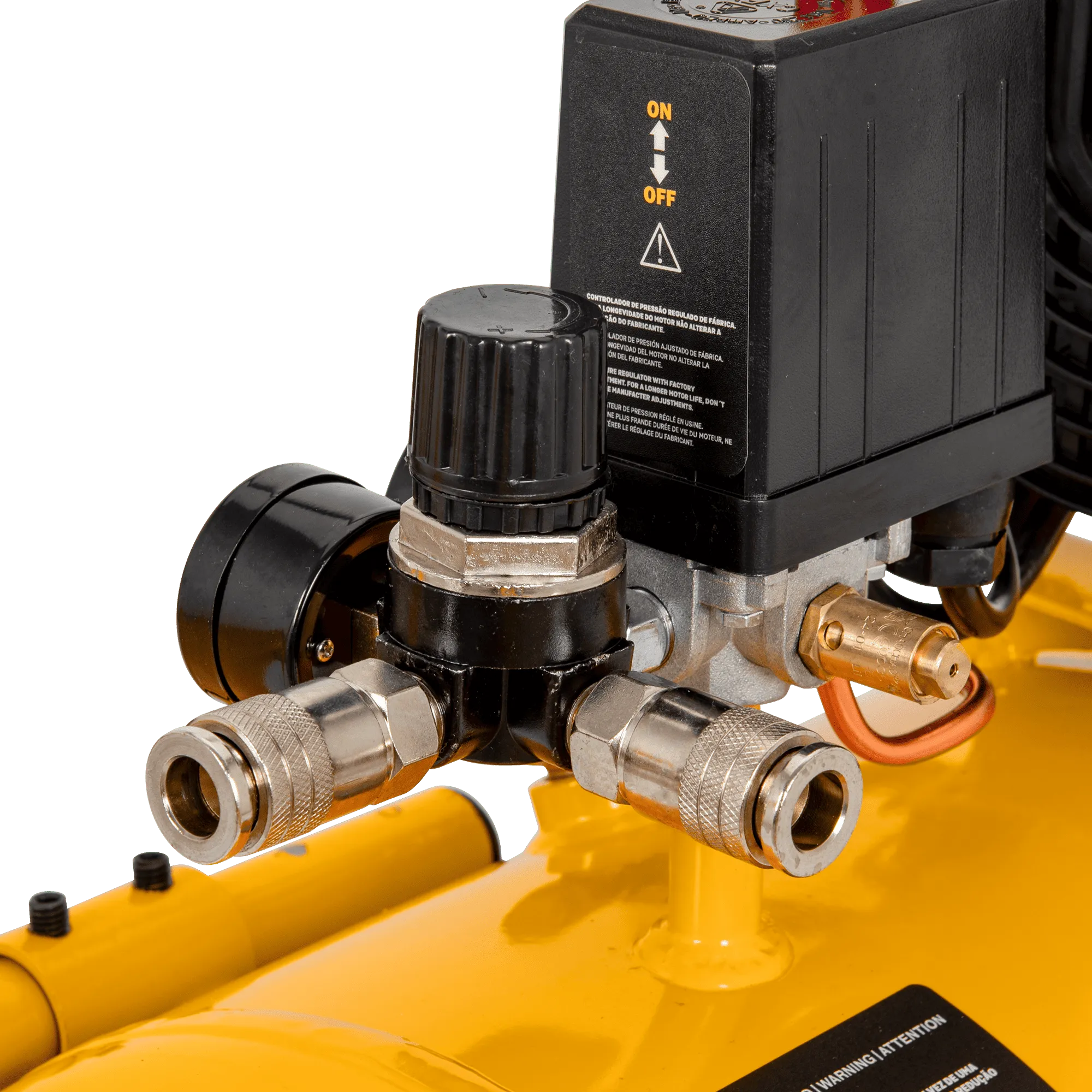 Este modelo vem equipado com um motor silencioso sem necessidade de lubrificação de óleo, tornando-o mais amigo do ambiente e confortável dada o seu reduzido ruído. Motor de baixo ruído sem óleo; Válvula de segurança; Interruptor “On/Off”; Proteção térmica.