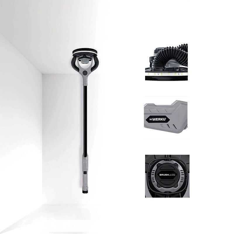 LIXADORA GIRAFA Ø 225MM, MOTOR BRUSHLESS SEM ESCOVAS DE 400W DE POTÊNCIA, ROTAÇÕES VARIÁVEIS DESDE 4000RPM E 8500RPM, EXTENSIVEL E COM LUZ LED 360º, ESTRUTURA EM ALUMÍNIO ULTRA RESISTENTE WERKU WK 403590